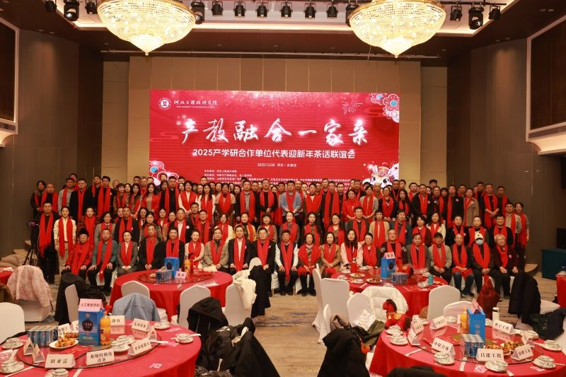 岁末迎新,暖意融融。为持续推进产教融合走深走实,凝聚多方合作共识,共筑高质量发展新篇,12 月 26 日,河北工程技术学院以 “产教融合一家亲” 为核心主题,盛大举办 2025 年产学研合作单位代表迎新年茶话联谊会。与我院合作单位,河北千诚电子有限公司、河北德赞土地规划咨询有限公司等16家企业参会,