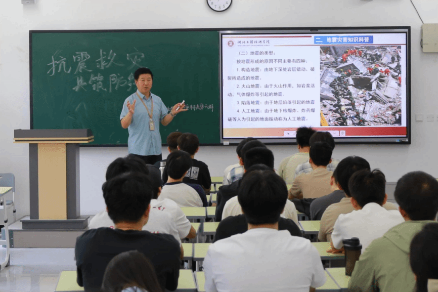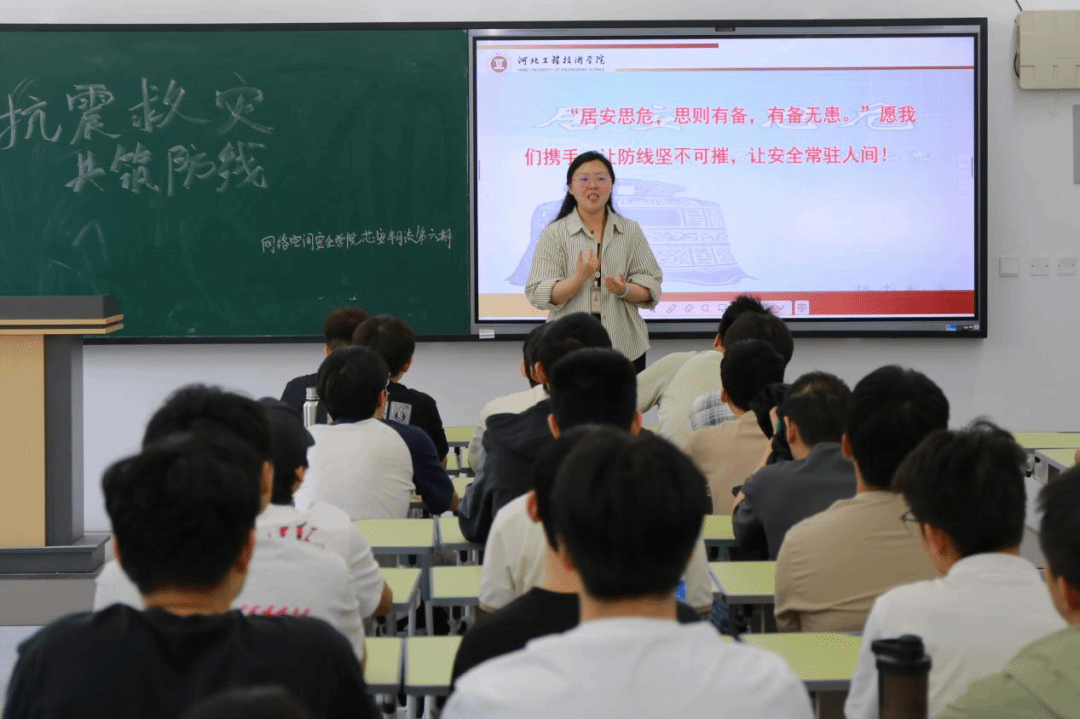 本次活动由网络空间安全学院辅导员张跃也与马克思主义学院专职教师肖相文担任主讲。张跃也老师围绕2008年汶川地震,介绍了中国共产党以抢险救灾斗争“主心骨”的担当,带领全国各族人民展开一次又一次气壮山河的生死营救,及在这过程中所缔造的抗震救灾精神。肖相文老师则以“善除患者,理于未生”为核心,为学生科普面对各类灾害的预防、自救及搜救措施,指出数字孪生、卫星监测等技术应用于防灾减灾救灾领域,有力提升了工作覆盖面和效率,强调新时代青年不断推进新兴技术发展,用好技防手段,强化物防建设,夯实人防基础,方能兜牢安全底线。