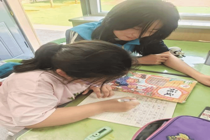 志愿者们进入小学,映入眼帘的是在操场上嬉笑打闹奔跑的孩子们,他们热情地拉着志愿者们的手,邀请他们去教室“做客”。志愿者们合理分组进入教室,对孩子们进行专一的学习辅导。对孩子不会的问题进行解难答惑,耐心讲解。课间休息时间,一部分志愿者们在室内与孩子们谈话玩耍;另一部分的志愿者们来到了操场,让操场成为了欢乐的海洋。志愿者们和孩子们一起开展了丰富多彩的游戏活动。在这些游戏中,孩子们不仅锻炼了身体,更重要的是培养了团队合作精神和竞争意识,他们学会了相互帮助、相互鼓励,共同面对挑战。