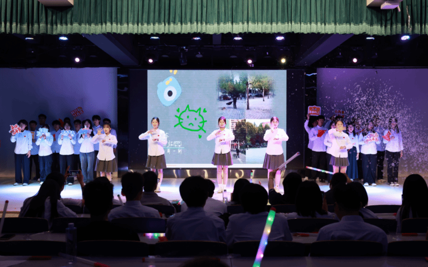 舞台上,以情景再现激活历史记忆:2024级网络空间安全4班团支部以幕剧形式复刻“五四”街头,激昂音效中,演员们振臂高呼“外争主权,内除国贼”,逼真还原百年前青年的家国呐喊;2024级软件工程2班团支部聚焦校园现实,通过情景剧《破茧向阳》揭露霸凌困境,光影流转间,演员从蜷缩颤抖到携手前行的转变,细腻传递出“向光而生”的治愈力量,引发观众强烈共情;2024级网络空间安全5班团支部以五四精神为引,通过舞台剧回溯往昔峥嵘,搭配朗诵激昂诉说,融合舞蹈与音乐《错位时空》,串联古今,展现团支部别样风采。