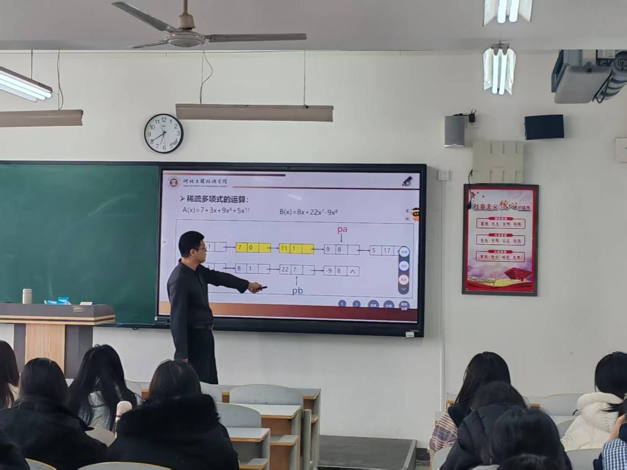 本次观摩课由我院空间信息与数字技术专任教师路爽主讲,授课课程为《数据结构》。课堂上,路老师以真实案例为切入点,运用情境教学、小组研讨等多元教学方法,将理论知识与实践应用深度融合,注重引导学生主动思考、自主探究。其清晰的教学逻辑、生动的课堂互动及娴熟的现代教育技术运用,展现了高水平的教学素养,赢得在场教师一致好评。