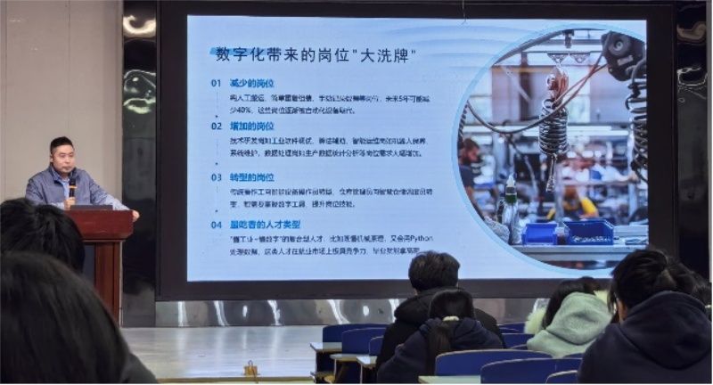 11月21日下午,软件工程专业邀请了河钢数字技术股份有限公司数字工业事业部副总经理——曾帆,为2025级软件工程专业的同学们开展专业认知讲座。曾总深耕信息化行业22年,聚焦国有企业、央企、区域政府等领域,在智慧城市、工业互联网、企业数字化转型、数据业务、智算信创等领域经验深厚。曾总深入细致地分享了未来职业的发展方向,指明了同学们在校期间应增长的专业能力和学习的目标。此次讲座不仅使同学们对所学专业有了更全面、更深入的认识,也对未来的职业道路有了更清晰的规划与思考。